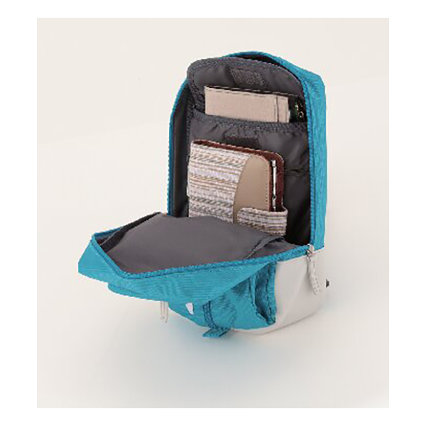 開口部:ファスナー式、外部:ファスナーポケット1、内部:ファスナーポケット1・面ファスナー式ポケット1、ショルダーベルト着脱不可(長さ調節可)。ちょっとしたものを入れるのに便利なサイズのボディバッグです。
