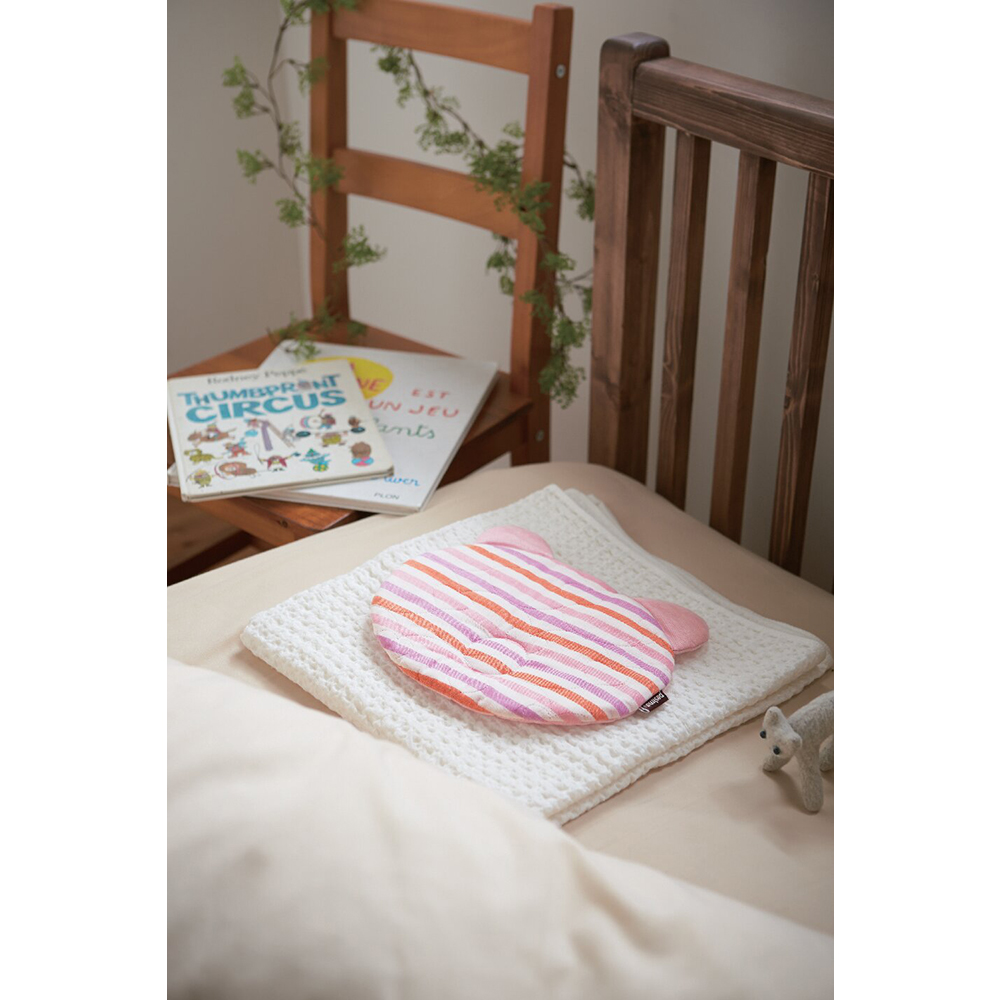 サイズ表示の“厚みは中材の状態により、実寸が異なる場合がございます。目安としてご利用ください。汗をかきやすい赤ちゃんにやさしい枕。