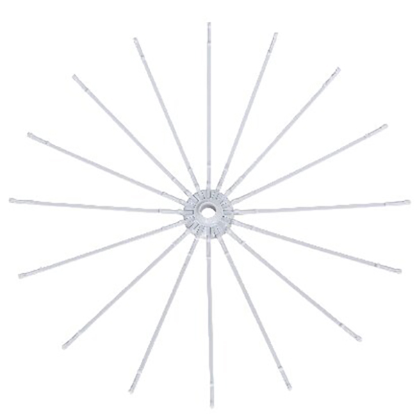 耐荷重約8Kg。省スペースで効率良く干せる2段パラソルタイプの物干しスタンドです。上段のピンチハンガーは着脱式で取り外して独立使用ができます。折りたたんで約15cm幅にスリム収納ができます。