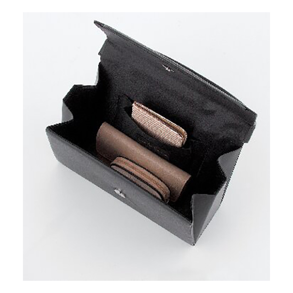 開口部:マグネット式、内部:オープンポケット1。シンプルでありながら、気品を感じさせるヒロミイチダのフォーマルバッグです。