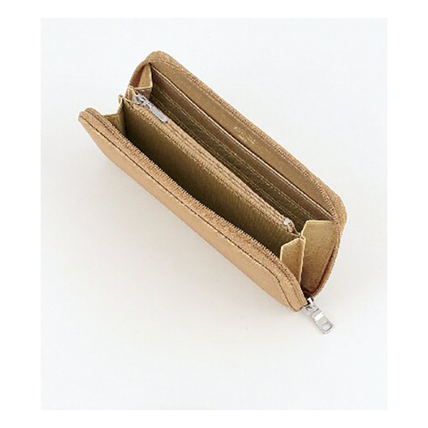 開口部:ファスナー式、内部:札入2・ファスナー式小銭入・カード入8・オープンポケット2。たっぷり収納できるラウンド型財布。