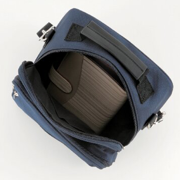 開口部:ダブルファスナー式、外部:ファスナーポケット2、内部:オープンポケット1・ファスナーポケット1、ショルダーベルト付(着脱可・長さ調節可)。手提げとショルダーでご使用いただける2WAYショルダーバッグです。