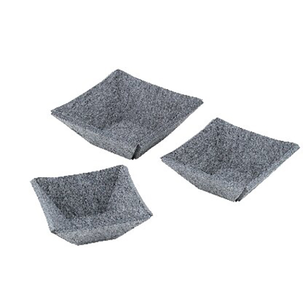 折り曲げて組み立てる硬質フェルトのボウルです。硬質フェルトは、フェルトそのままの素材感を保ちつつ、触ると木のように硬いとてもユニークな素材です。芯材がないのでぶつかっても安全で、ひきずっても床に傷がつきにくいのが特徴。
