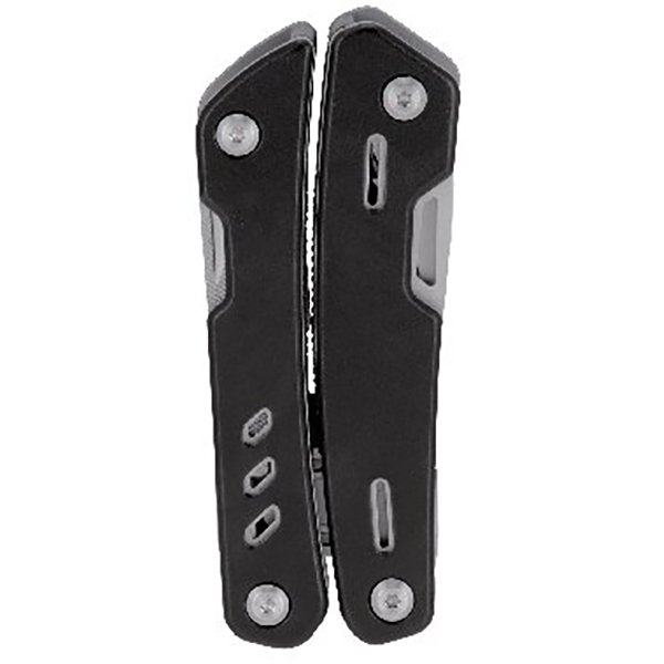 ペンチ・ワイヤーカッター・プラスドライバー・マイナスドライバー・波刃ナイフ・爪ヤスリ・栓抜き・缶切り・ナイフ・革の穴あけ・のこぎりの11機能搭載。折りたたんでコンパクトに収納できます。