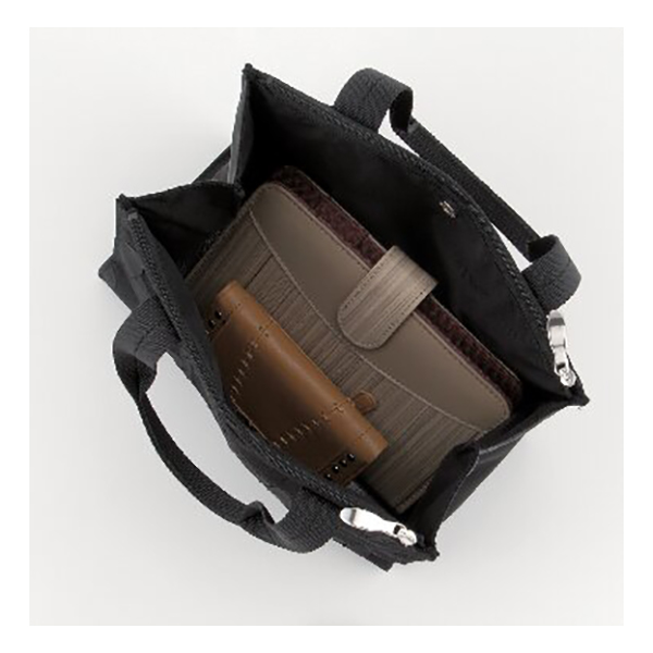 手提げバッグ/開口部:ホック式、外部:ファスナーポケット2、内部:オープンポケット1、ショルダーバッグ/開口部:ファスナー式、外部:ファスナーポケット2、内部:オープンポケット2、ショルダーベルト着脱不可(長さ調節可)。