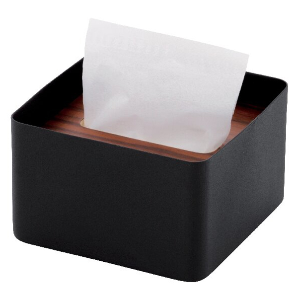 天然木とスチールを合わせた存在感のあるハーフティッシュケース。通常サイズのティッシュペーパーを半分にカットして使うティッシュケースです。