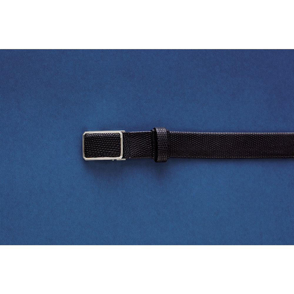 リザード革インステッチ メンズベルト(ブラック)
