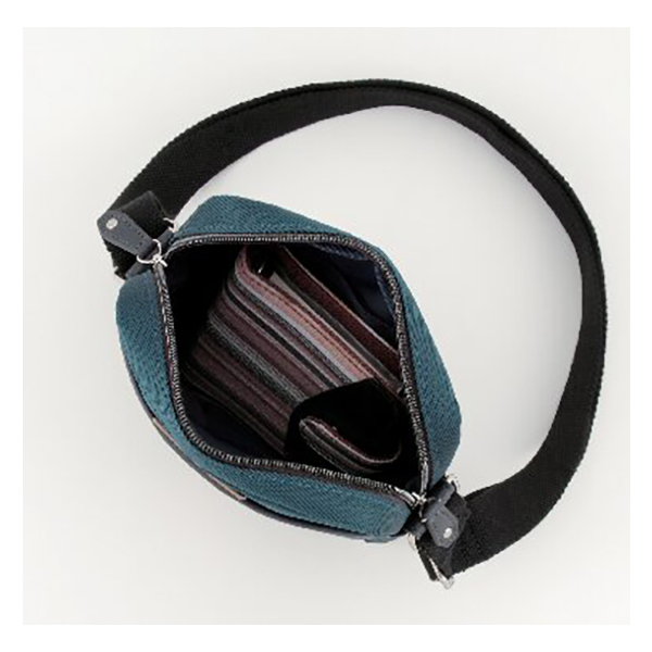 開口部:ファスナー式、外部:オープンポケット2、内部:オープンポケット1、ショルダーベルト着脱不可(長さ調節可)。