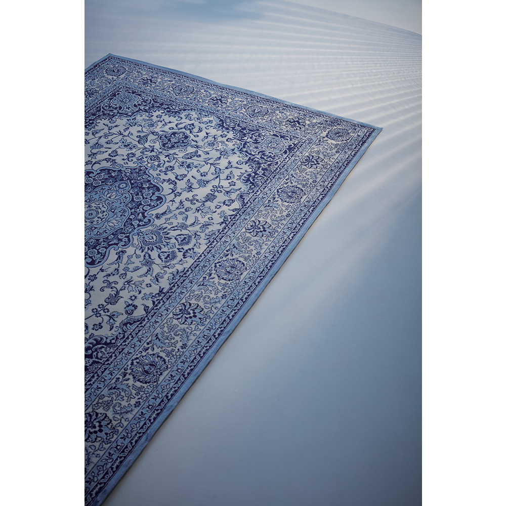 シルクのように滑らかな手触りのベルギー製モケット織カーペット。綿混なので一年中快適に使用できます。折り畳めて収納できます。
