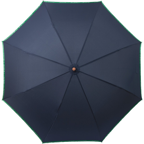 ふちにサテン地の少し大きめのロゴ入りテープ加工がポイントの折りたたみ傘。手元にはブランドネームプレート付です。