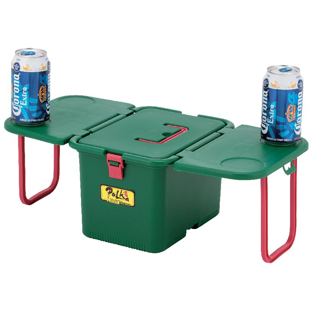 クーラーボックスが便利なテーブルに早変わり。運動会やピクニック、海水浴などのレジャー場面で活躍します。脚をテーブルの裏に収納できます。350mlの缶が2列で6本セットできます。