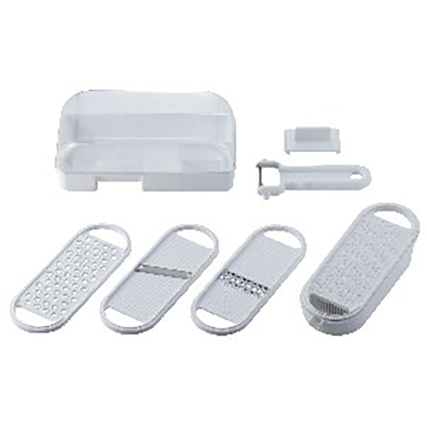 内容:おろし、スライサー、千切り、薬味おろし、受皿、ピーラー、ホルダー、収納容器各1