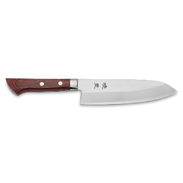 日本でも有数の刃物の町、岐阜県関市で作られた包丁です。柄には握った時に手に馴染みやすく、温かみのある積層強化木を使用しました。