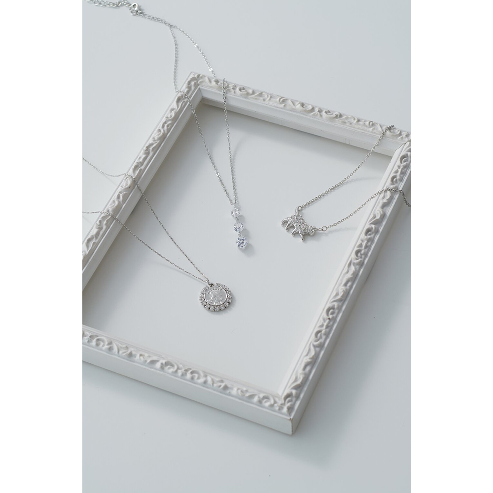 サイズの違うキュービックジルコニアが3つ並んだエレガントなペンダントです。動きのあるデザインでキラキラと輝きます。