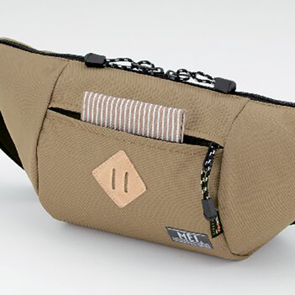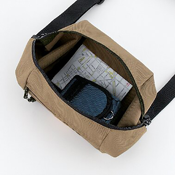 開口部:ファスナー式、外部:ファスナーポケット1、ショルダーベルト着脱不可(長さ調節可)。