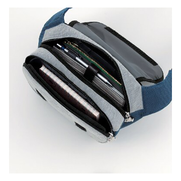 開口部:被せ面ファスナー式、外部:ファスナーポケット1、内部:オープンポケット1、ウエストベルト着脱不可(長さ調節可)。