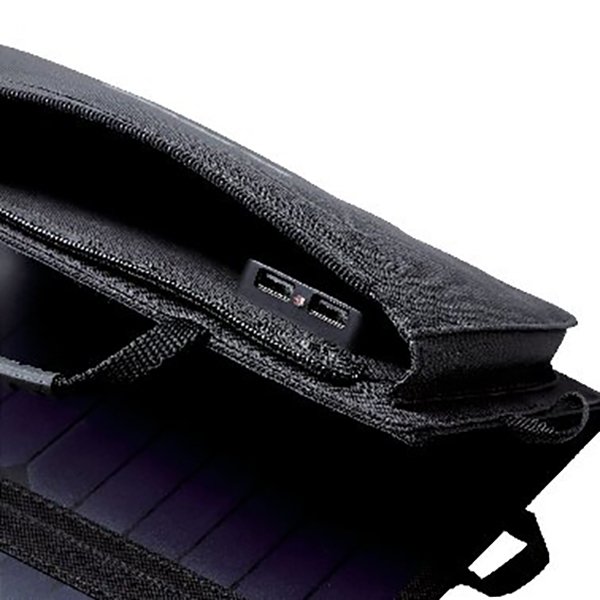 防災・アウトドアに最適。ソーラーパネルの面に太陽光があたるように設置し、充電する機器とケーブルで接続するだけで充電が可能です。機器を2台同時に充電することができます。(太陽光の強さによって、充電効率が変化します。設置方法や天候など、充電環境によって、必要な出力が得られない場合があります。)ケーブルや機器を収納できる便利なポケット付です。付属ケーブルをUSB Type-C(USB-C)コネクタに変換できる変換アダプタが付属しています。