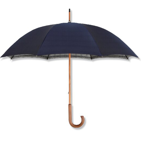 甲州織 裏格子木棒手開き長傘(ネイビー)