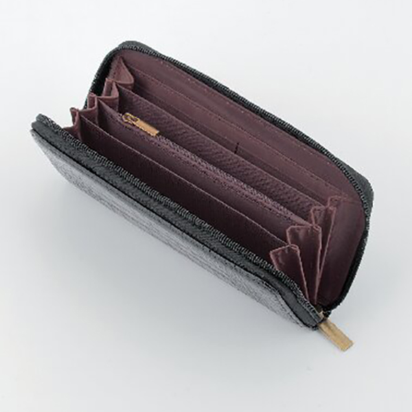 開口部:ファスナー式、内部:札入2・ファスナー式小銭入・カード入8・オープンポケット4。