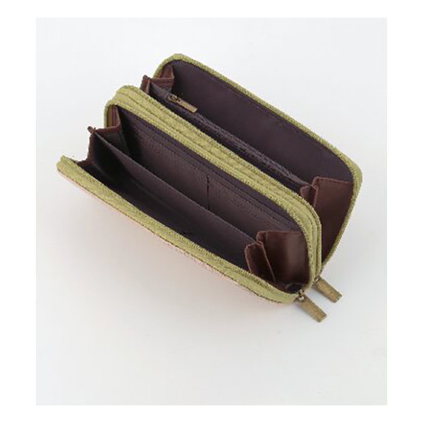 開口部:ファスナー式、内部:札入4・ファスナー式小銭入・カード入8・オープンポケット2。
