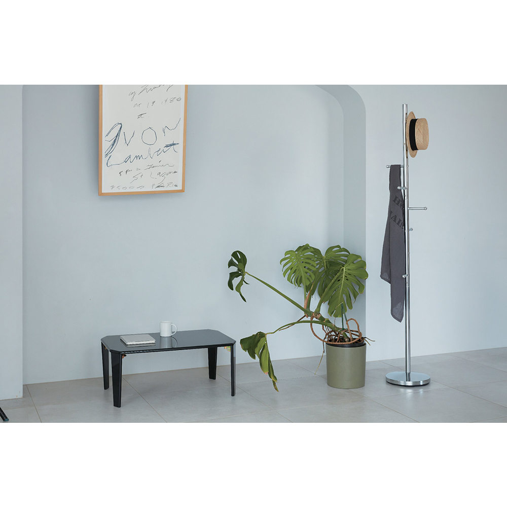 耐荷重約20Kg。光沢のある鏡面加工を施した天板と脚は同じ質感で一体感のあるデザイン。なめらかで汚れてもお手入れが簡単なので、普段使いに最適なテーブルです。