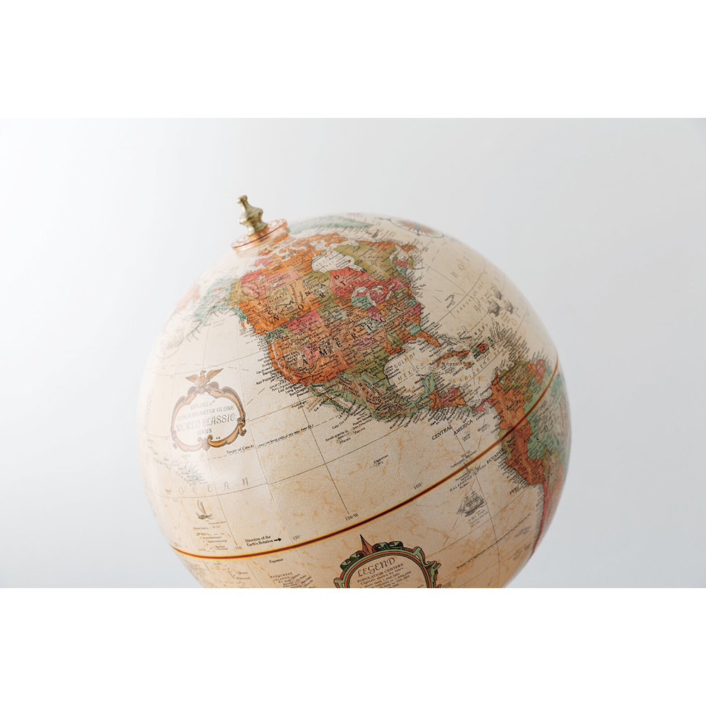 縮尺4,184万9,600分の1。意匠を凝らしたデザインのこの地球儀は、17世紀に作られたモデルの復刻版です。地図の内容は現在最新の情報が記載され、陸地は国別に色分けされた行政型地球儀です。山岳部には隆起の加工が施されています。輸入品の為、商品の仕様は予告なく変更される場合がございます。世界情勢の変化に伴い、最新の国名と異なる場合がございます。予めご了承ください。