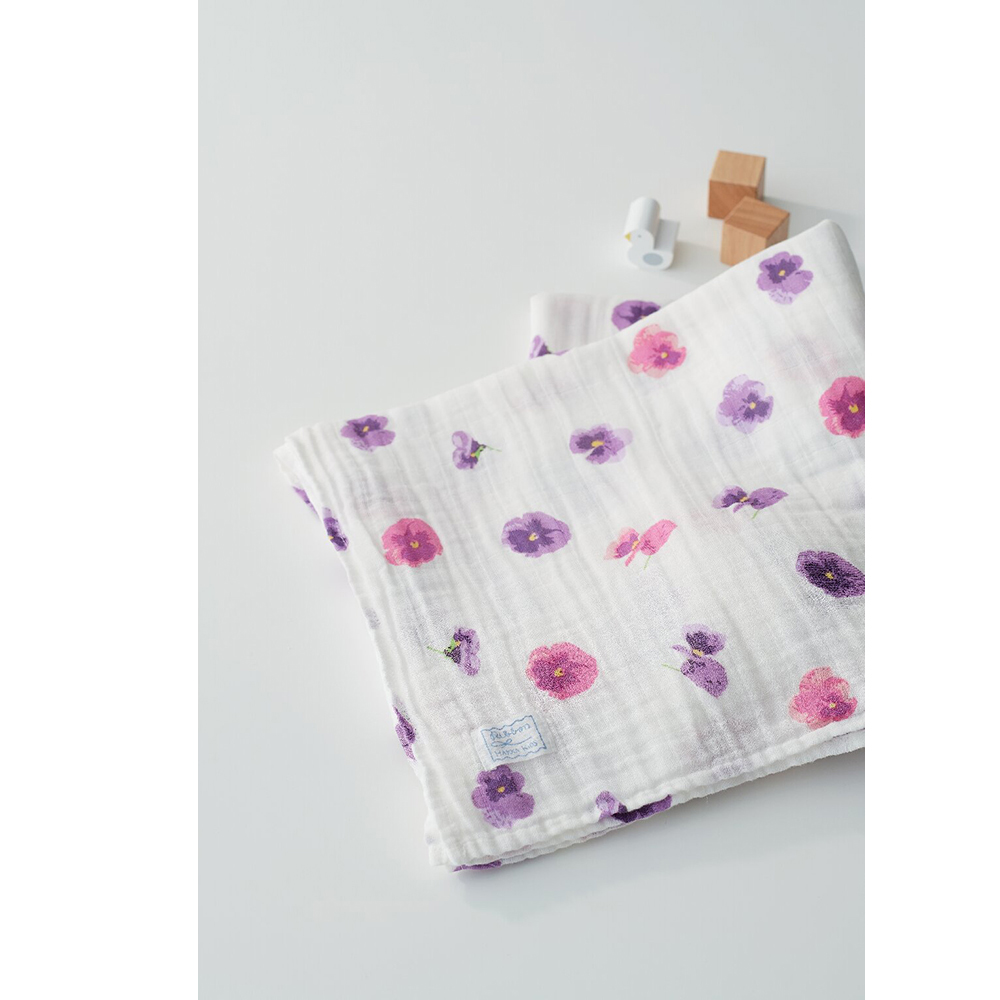 リボンハッカキッズ ガーゼおくるみ・ハンカチセット(スミレ)