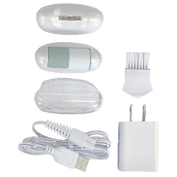 充電式。ヘッド交換で1台3役の優れモノ。電動なのでスピーディーでラクラク。かかとの角質ケアから爪のお手入れまでを簡単に。USBケーブル付属。