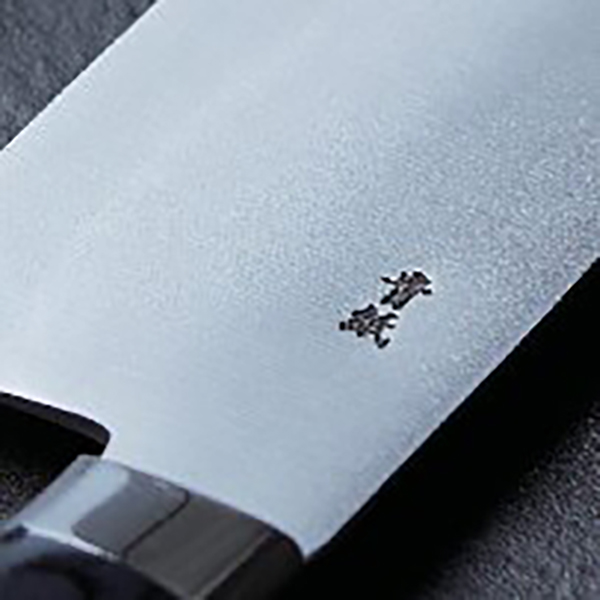 鋼の中にある不純物を極力取り除き、さらにタングステン、クロムなどを含有して硬度を高めた青紙鋼を使用して作られた青紙鋼 割込三徳包丁。国内外で認められる確かな切れ味をぜひ実感してください。