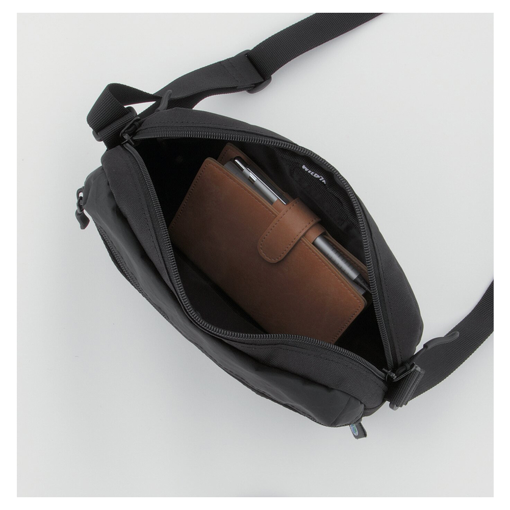 開口部:ファスナー式、外部:ファスナーポケット1、内部:面ファスナーポケット1、ショルダーベルト着脱不可(長さ調節可)。