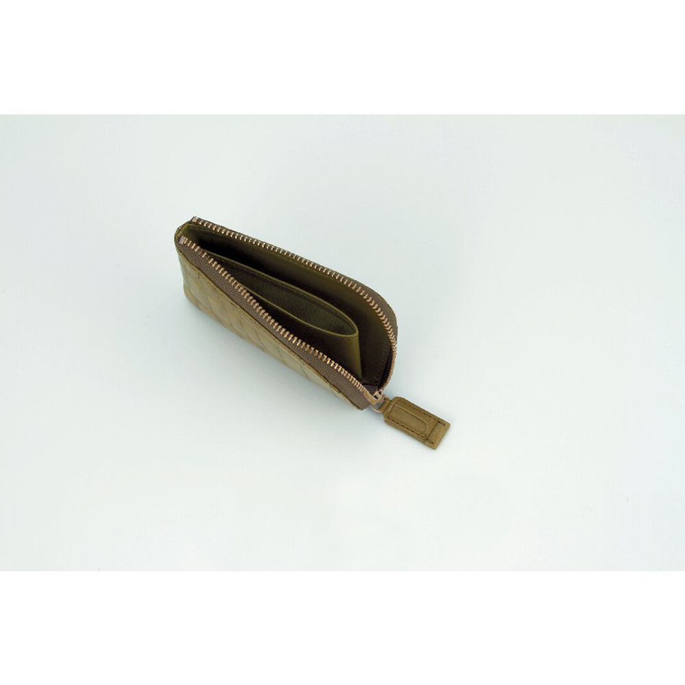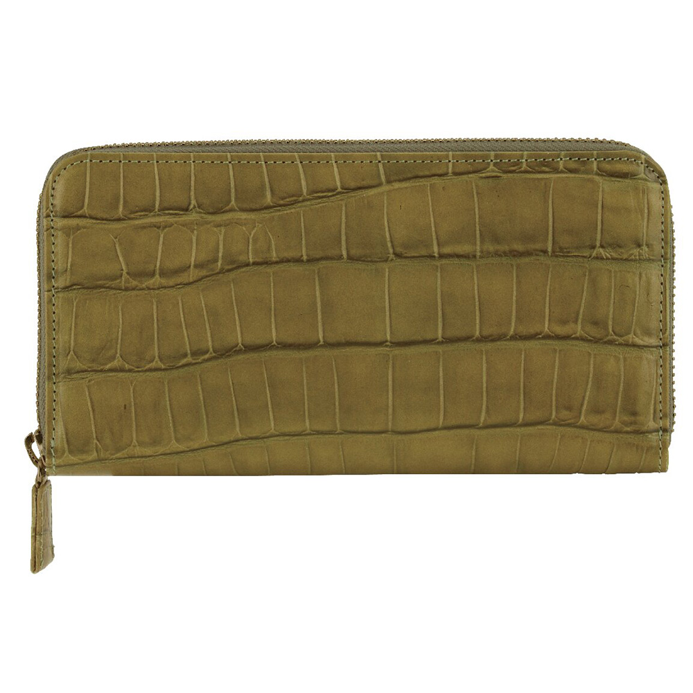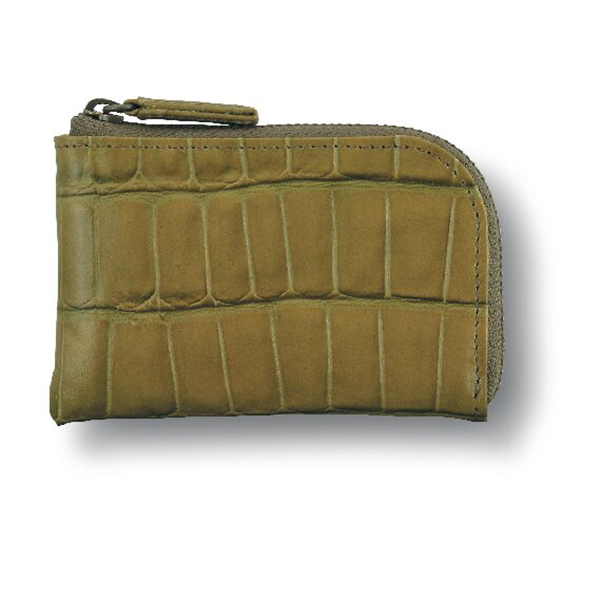 ワニ型押 ラウンド財布・ミニ財布(カーキ)