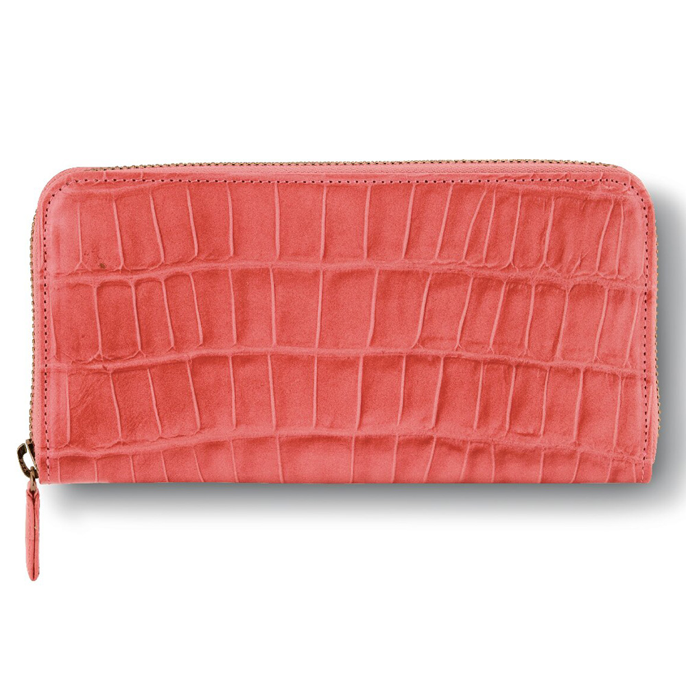ワニ型押 ラウンド財布・ミニ財布(ピンク)