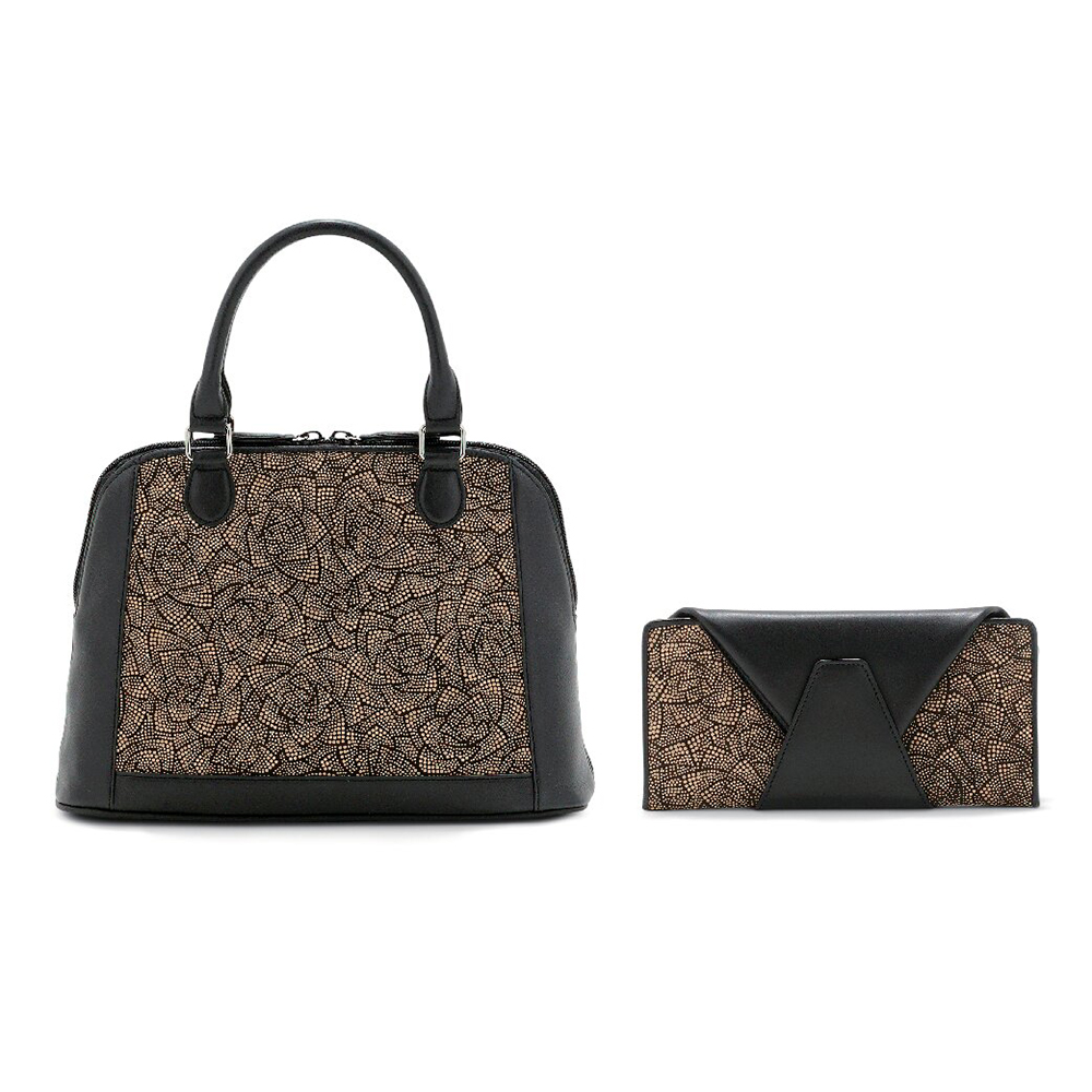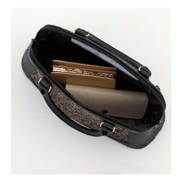 手提げバッグ/開口部:ファスナー式、外部:ファスナーポケット1、内部:オープンポケット2・ファスナーポケット1、財布/開口部:ホック式、内部:札入1・ホック式小銭入・カード入14。