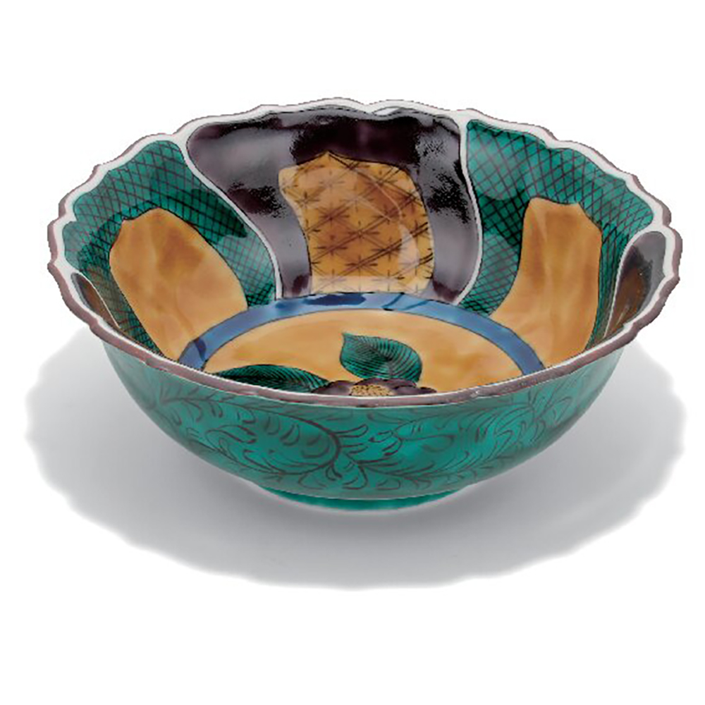 電子レンジ可。手作り品の為、色・柄・サイズが異なる場合があります。落ち着いたデザインの九谷焼の大鉢です。飾っても、和菓子やお料理にもお使いいただけます。