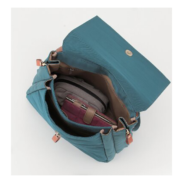 開口部:被せマグネット式、内部:オープンポケット3・ファスナーポケット1。側面ファスナーでマチ幅を変えられるダブルマチ仕様。収納物の量に応じて変更できます。