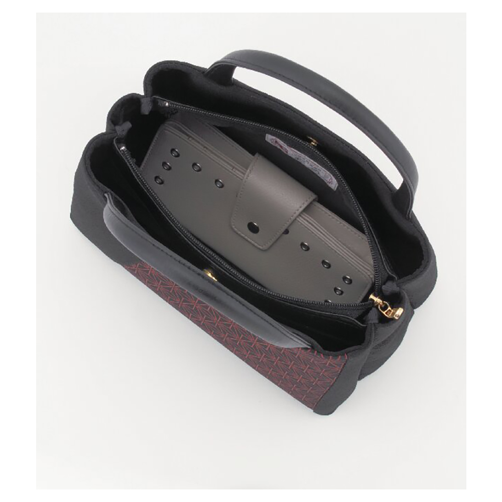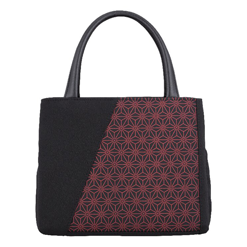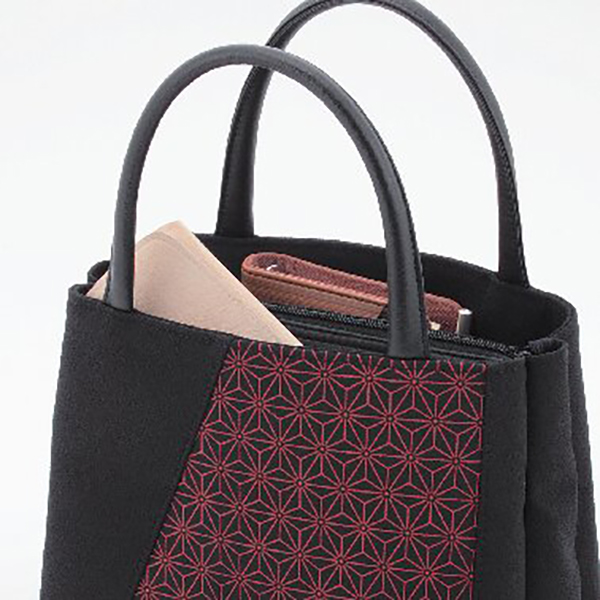 開口部:中央ファスナー式、前後マグネット式。京都の国産バッグメーカー「三昌」。京友禅の技法を使用したバッグです。日本古来の伝統柄「麻の葉柄」を京友禅で表現しています。