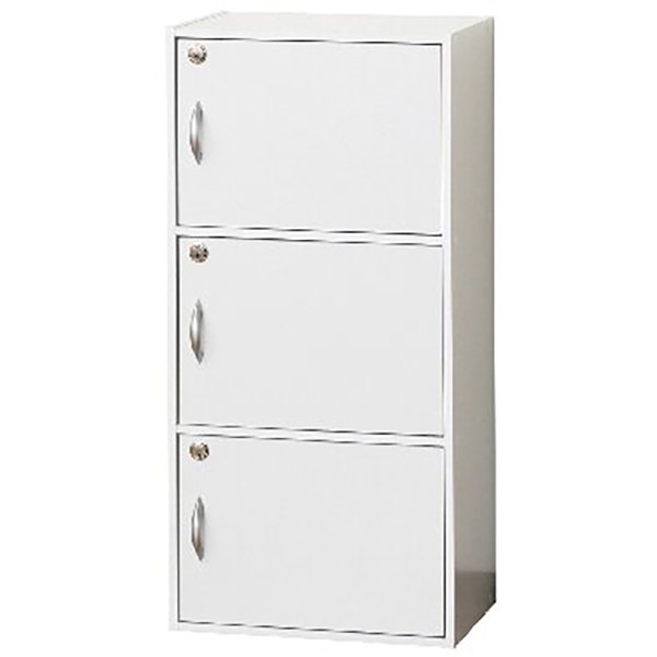 鍵付収納ボックス3段(ホワイト)