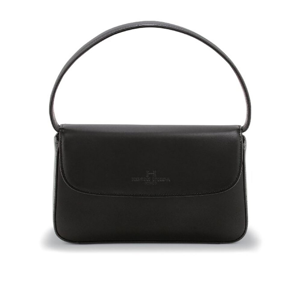 開口部:被せマグネット式、内部:オープンポケット1。服飾評論家・市田ひろみ監修。牛革を本体に使用したフォーマルバッグ。
