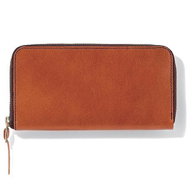 手塗りオイルレザー切れ目仕立て ラウンドファスナー長財布(ブラウン)