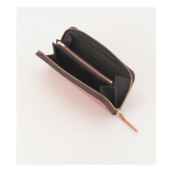 開口部:ファスナー式、内部:札入2・ファスナー式小銭入れ・カード入12・オープンポケット2。芯材を使わず革のみで仕立て上げたラウンドファスナー長財布。手作業のため色ムラや革本来の血筋などがあることがございます。