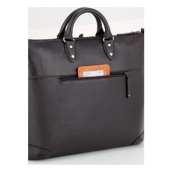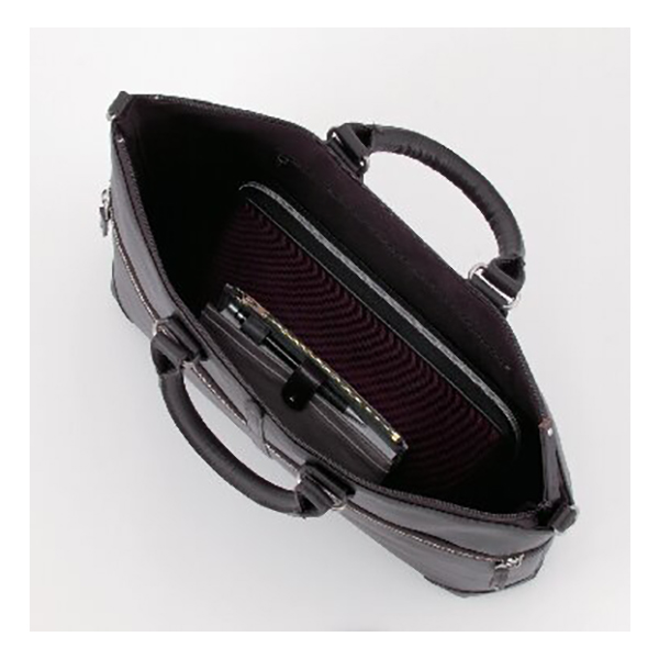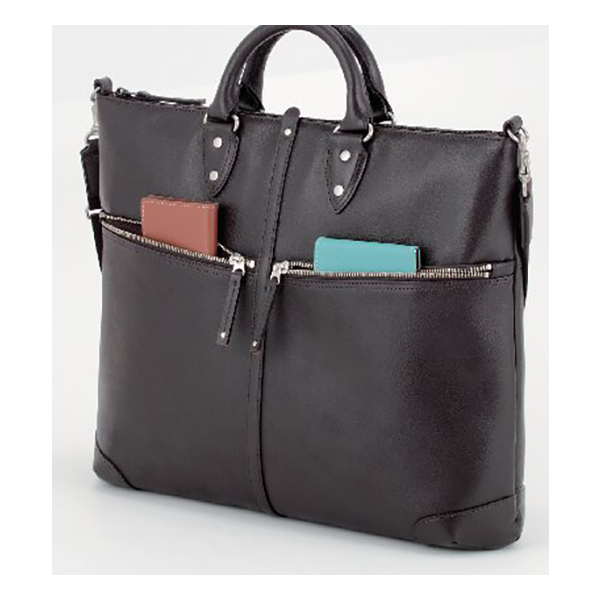 A4ファイルサイズ対応。開口部:ファスナー式、外部:ファスナーポケット3、内部:オープンポケット2・ファスナーポケット1、ショルダーベルト付(着脱可・長さ調節可)。サンプル作りから型抜き、縫製、仕上げまで手を抜くことなく丁寧なものづくりの姿勢を貫いている石井猛雄氏。下町の革職人の誇りとともにある誠実さは彼が生み出す一つひとつに込められています。