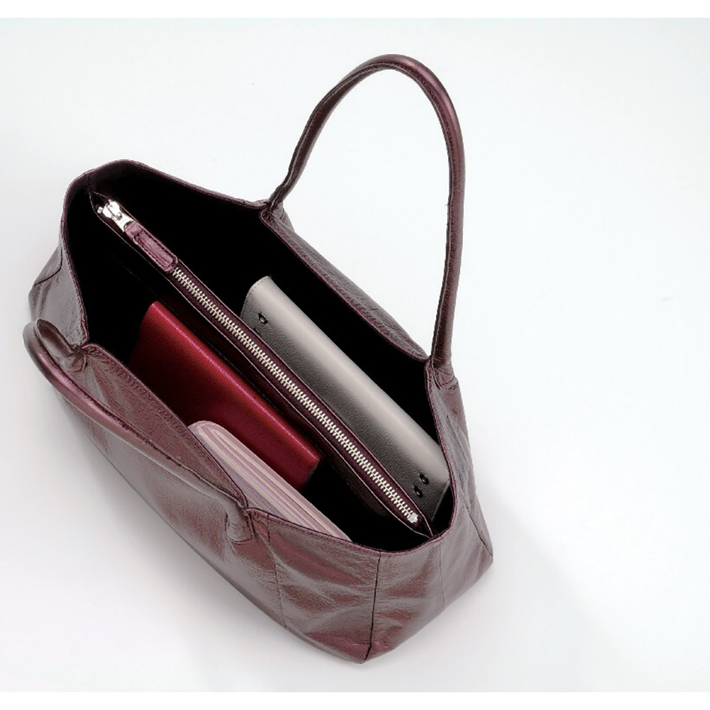 開口部:ファスナー式、内部:仕切りファスナーポケット1(ファスナーポケット内:オープンポケット2)。型抜き、縫製の工程を手を抜くことなく、丁寧なもの作りの姿勢を貫いている石井猛雄氏のセミショルダーバッグです。