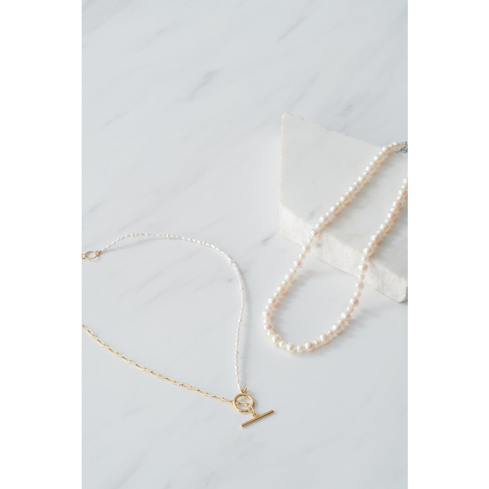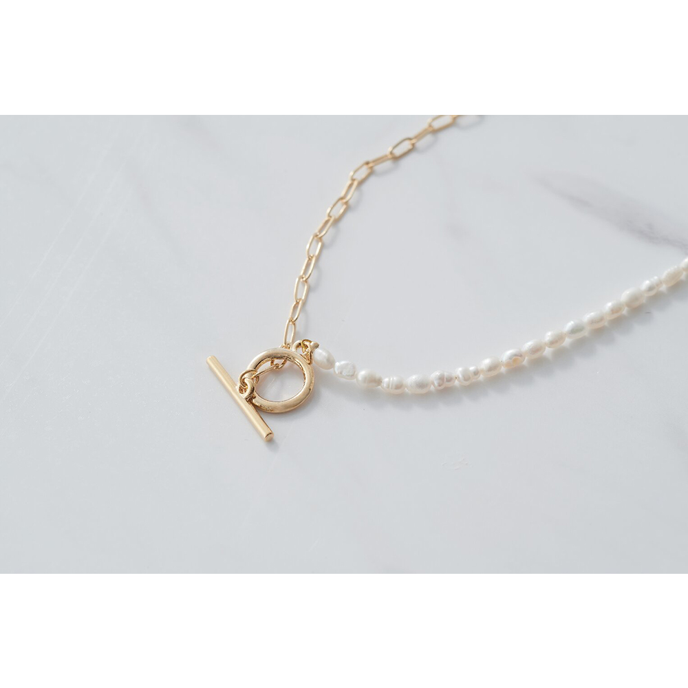 コーデのワンポイントとしてお使いいただけるネックレスです。淡水パールは天然素材の為、サイズ、形状、色味に個体差があります。