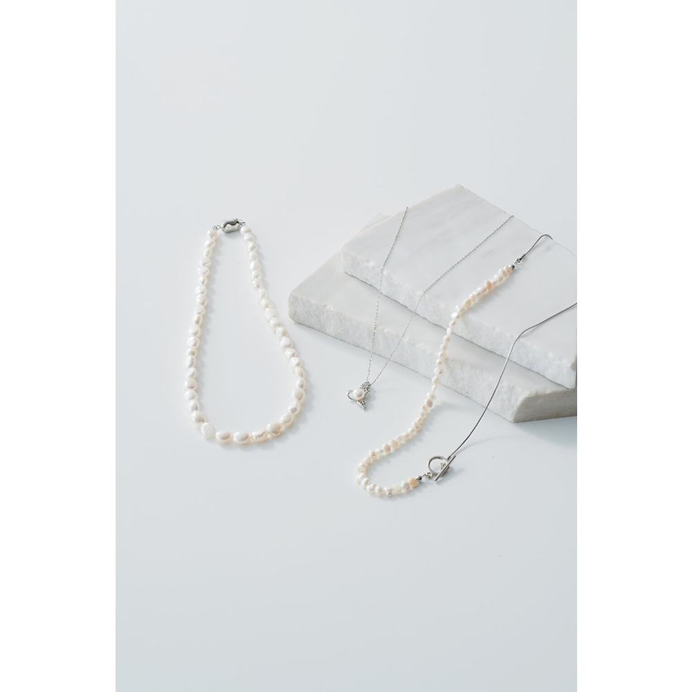 商品材料:トップ:シルバー925(ロジウムメッキ)、淡水パール、チェーン:シルバー925(ロジウムメッキ)