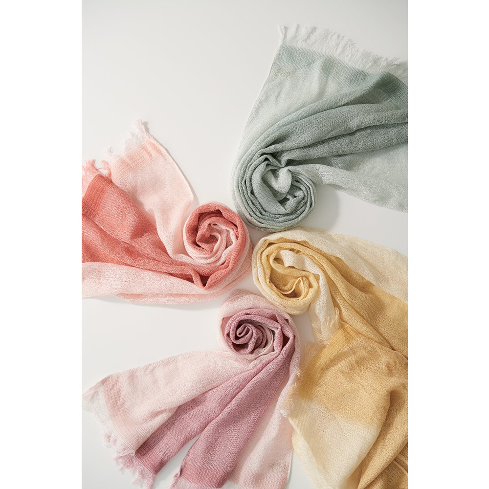 天然草木染なつめ織コットンマフラー(ピンク)