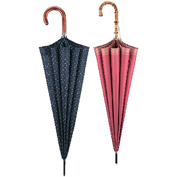手開き式。傘生地の名産地、山梨県の富士吉田で織られる「甲州織」を使用した婦人・紳士傘のセットです。