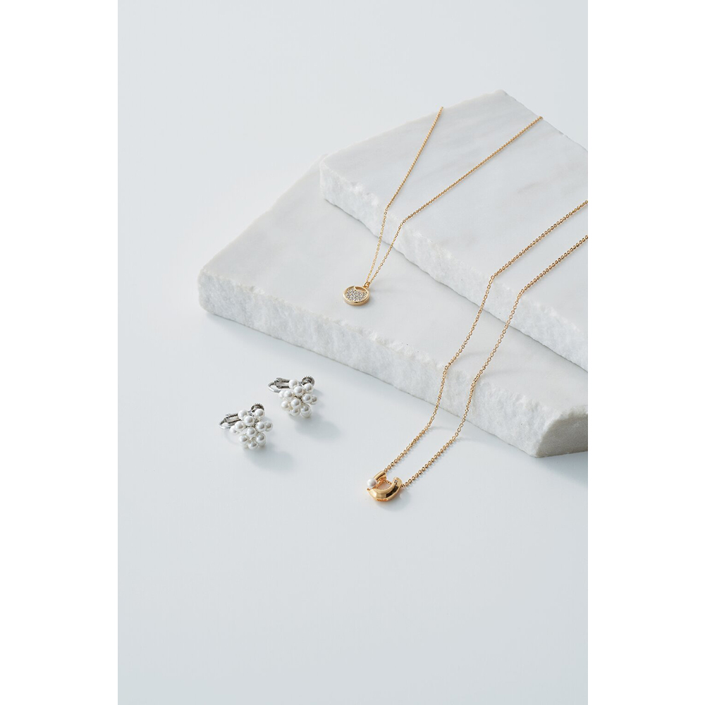 商品材料:トップ:真鍮(金色メッキ)・人工パール(貝パール)・ダイヤモンド1石(0.01ct)、チェーン:真鍮(金色メッキ)