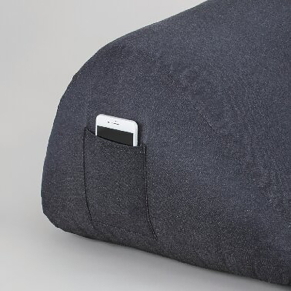 もたれてもクッションがずれないので、安心してくつろげます。サイドにスマートフォンを収納できるポケット付。