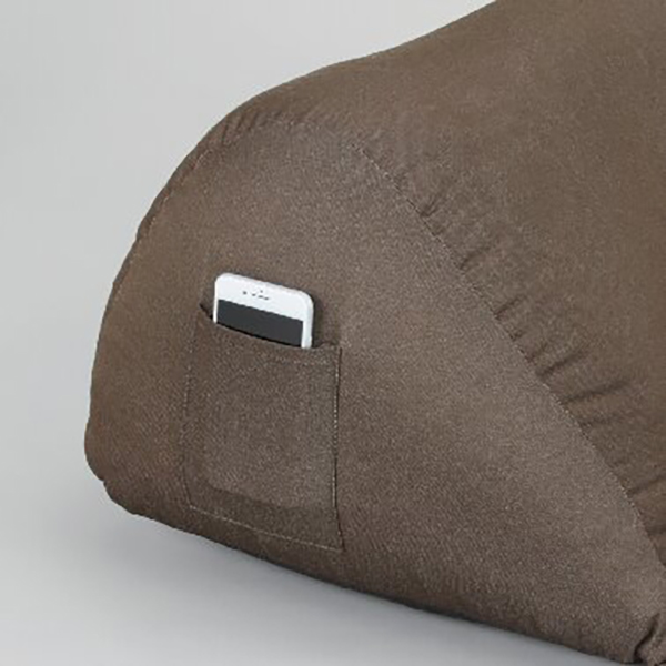もたれてもクッションがずれないので、安心してくつろげます。サイドにスマートフォンを収納できるポケット付。