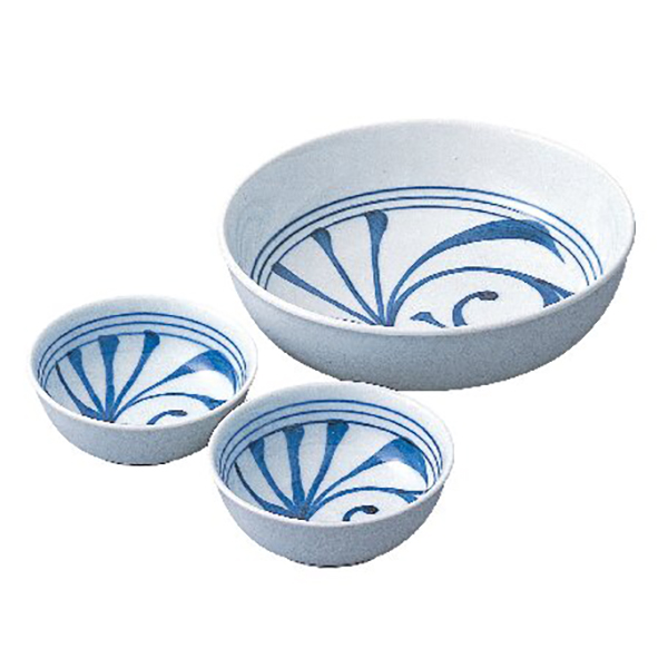 梅山窯 砥部焼呉須唐草平鉢・小鉢セット